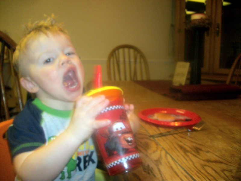 No room is safe from him. Last week in the kitchen he pushed a chair up to the sink and turned it on, flooding the kitchen. Another day he pushed a chair up to the cupboard and broke a glass, luckily he wasn't hurt. And the cookies are never safe from him. No room is safe actually. If i let him in my room he will dump out the hampers and use those to climb on to play with the TV and DVD player. Or he will take out every DVD from its case and every DVD paper from the cover. We've had to replace a lot of DVDs. So you would think the best option is in the bathroom with me where I can keep an eye on him. This room is not so safe either. He would eat an entire tube of toothpaste if I let him. Most days his favorite is to take a swim in the toilet with his good friends plunger and toilet bowl brush. Put my makeup on, dump out Tim's aftershave and cologne. Open the doors to the shower and throw things in there with me, or get in himself, fully clothed. You'd think this was different occasions, but you would be wrong. This kid is fast! Its usually 90% of this stuff every time.